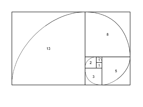 各正方形の辺の長さを半径とした曲線をつなぎ合わせると綺麗な螺旋が浮かび上がります。